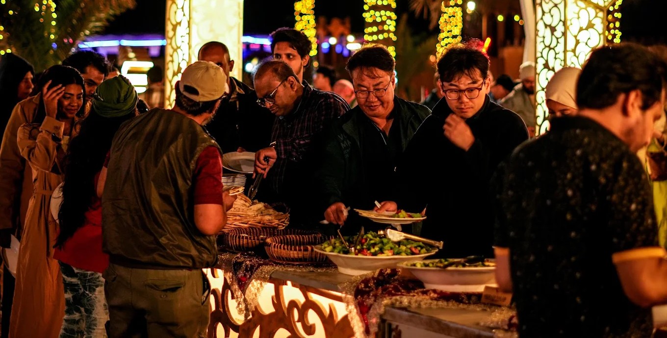 Indulge in a BBQ buffet dinner featuring a wide variety of vegetarian and non-vegetarian dishes. Enjoy live entertainment, including belly dance, Tanoura, Dabka, Zoofi Sama, and Saeedi performances, while taking in the serene desert ambiance under the stars.