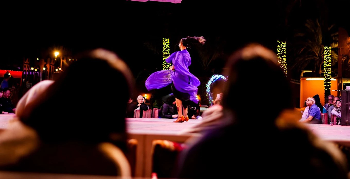Live Arabic folklore performances: belly dance, Tanoura, Dabka, Zoofi Sama, Saeedi